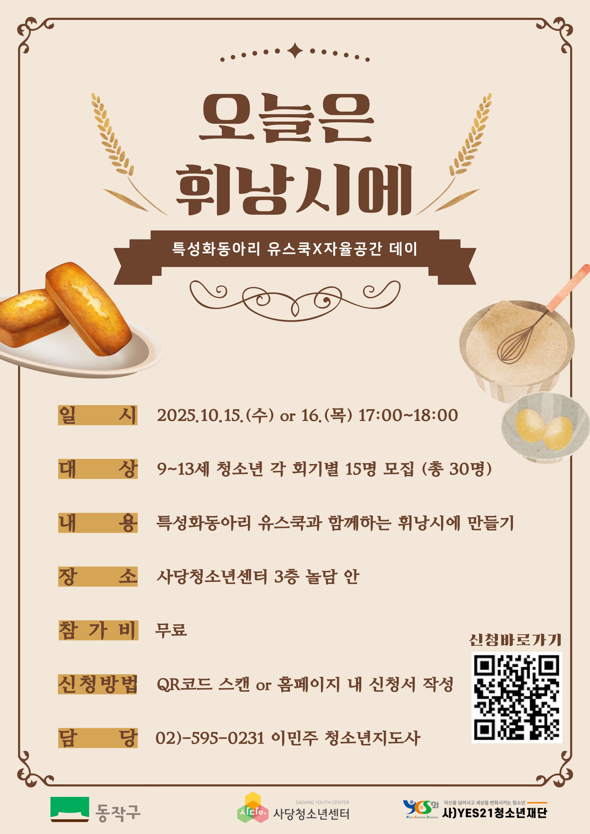 제공하신 정보는 사당청소년문화의집에서 운영하는 프로그램 사업 일정 안내 및 증빙서류 발급을 위해 사용됩니다.
