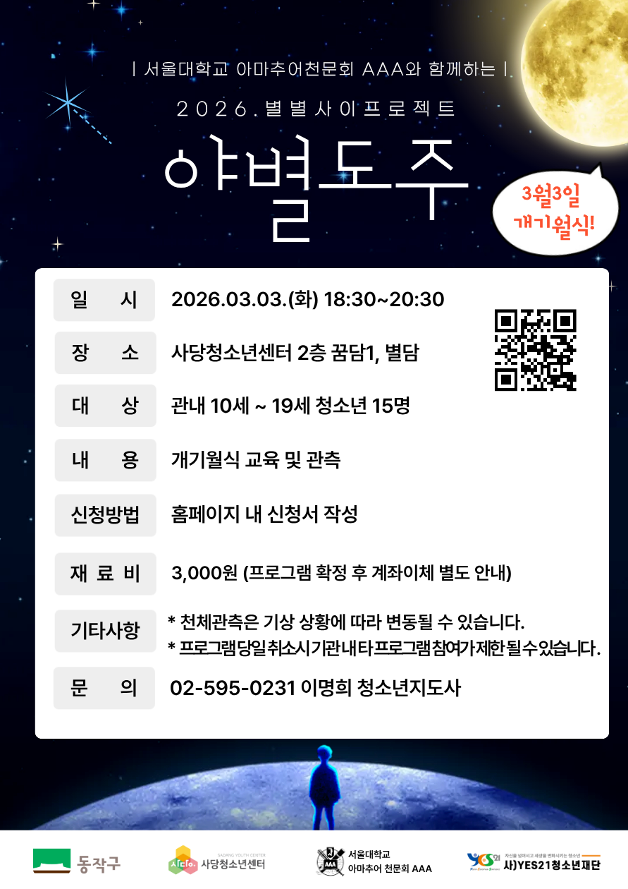 제공하신 정보는 사당청소년센터에서 운영하는 프로그램 사업 일정 안내 및 증빙서류 발급을 위해 사용됩니다.