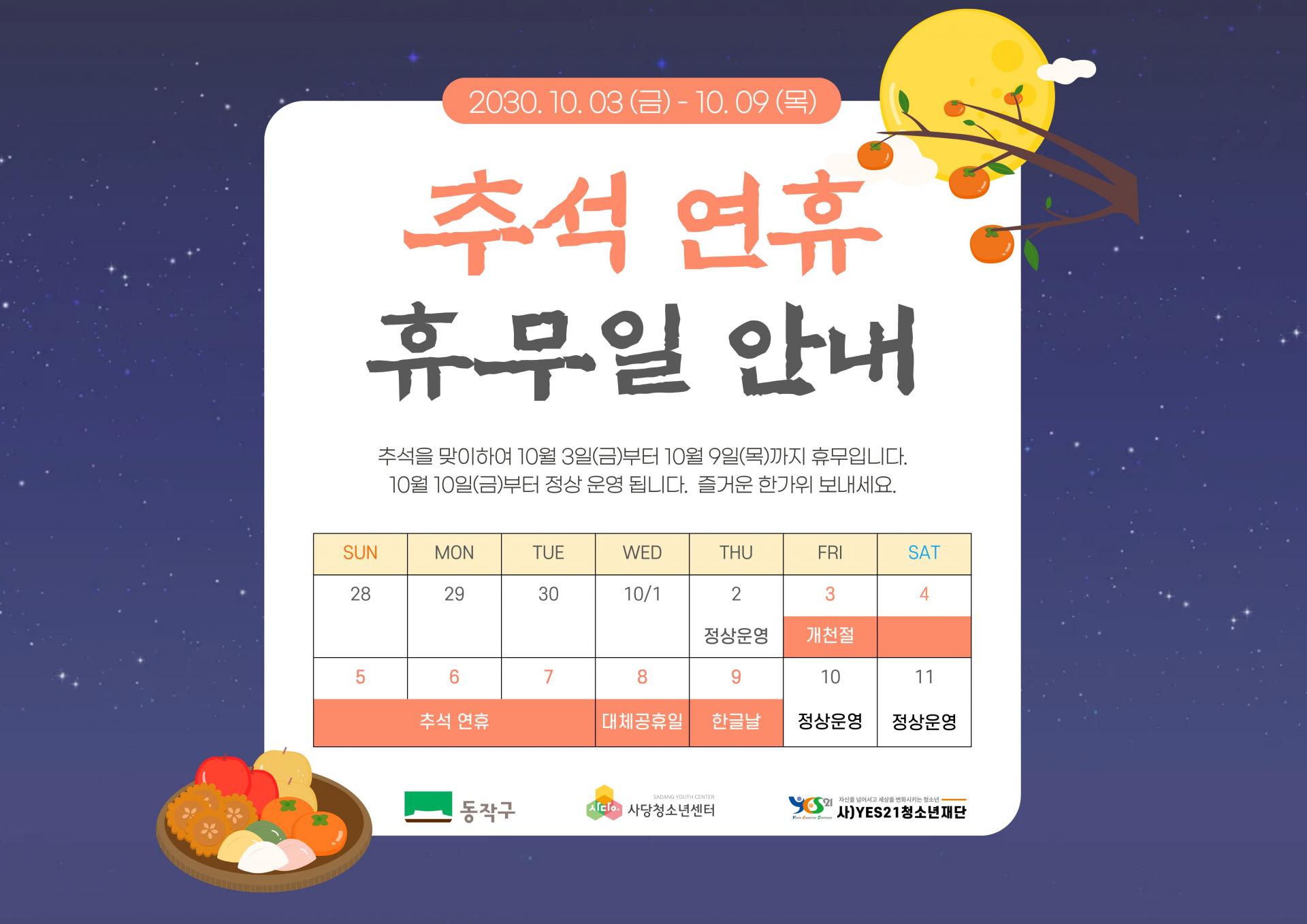 [사당청소년센터] 명절 연휴 휴관일 안내