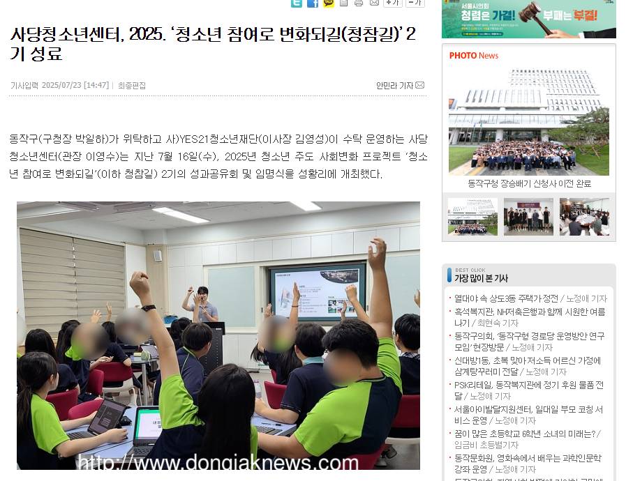 사당청소년센터, 2025. '청소년 참여로 변화되길(청참길)' 2기 성료