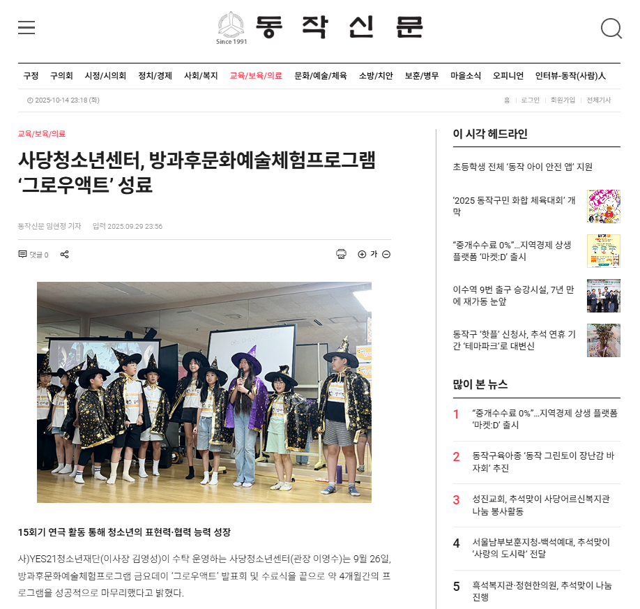 사당청소년센터, 방과후문화예술체험프로그램 ‘그로우액트’ 성료