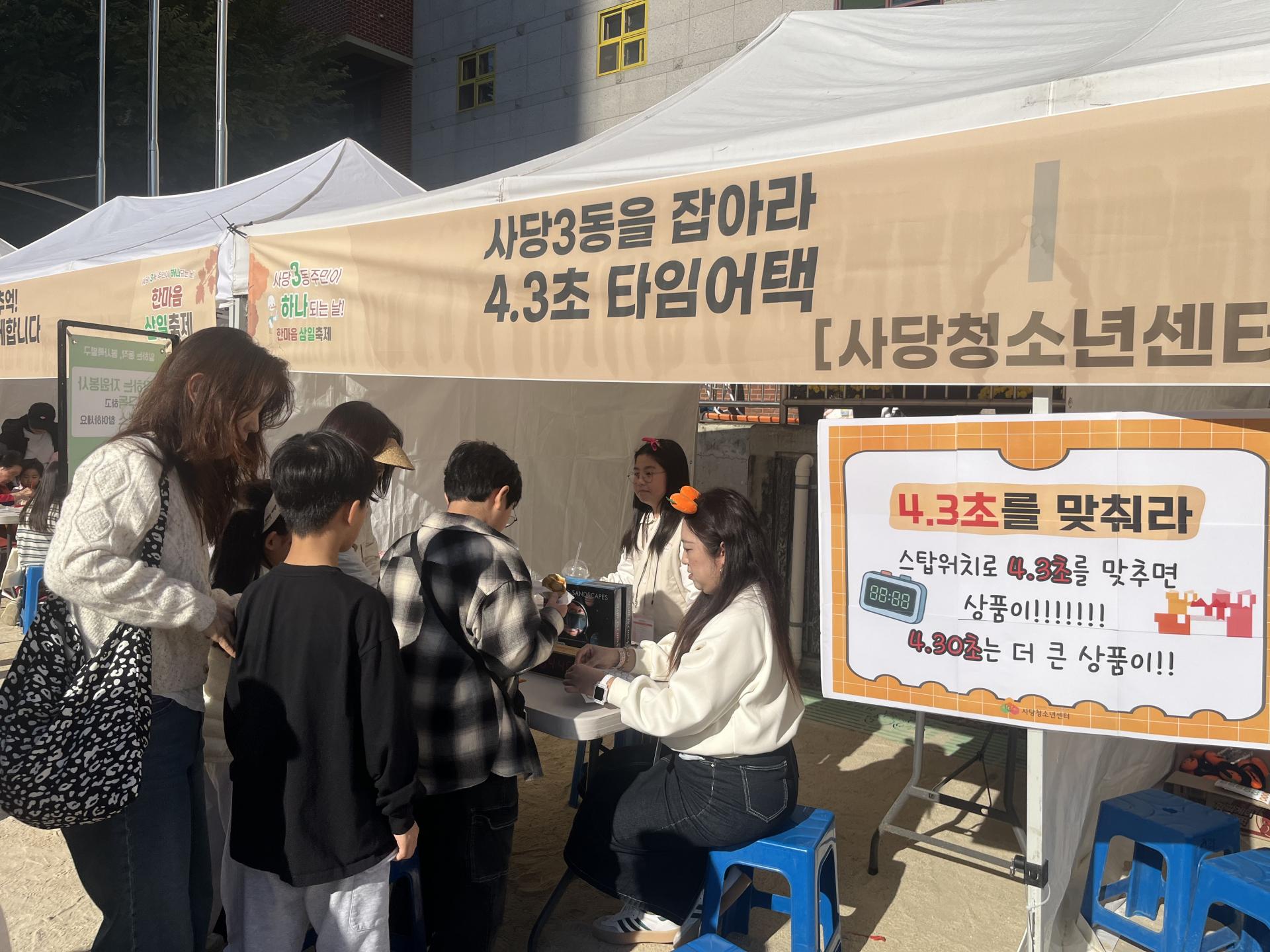 더불어 옆 부스에서는 4.3초를 맞춰라! 가족 게임이 진행되었는데요,