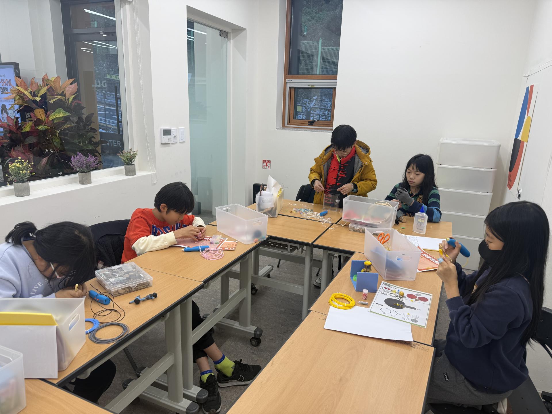 무사히 재료 쇼핑 완료 후! 오늘도 만들기에 집중하는 우리 친구들..🤩