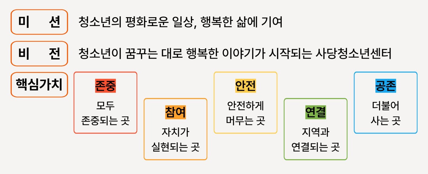| 팀원 | 청소년운영위원회 '해찬나래', 청소년봉사단 '크로커스', 프로젝트형 문화예술활동, 가족프로젝트, 국가보훈부 공모사업 | |