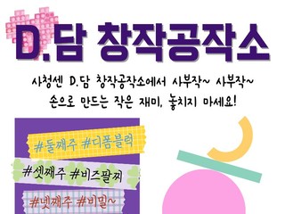 사당청소년센터 1층 D.담에서 사부작~ 사부작~ 손으로 만드는 즐거운 시간!창작공작소가 오픈했어요!!2월 6일 금요일부터 2월의 마지막 날까지 1층 D.담에 방문하면 작은 소작활동...
